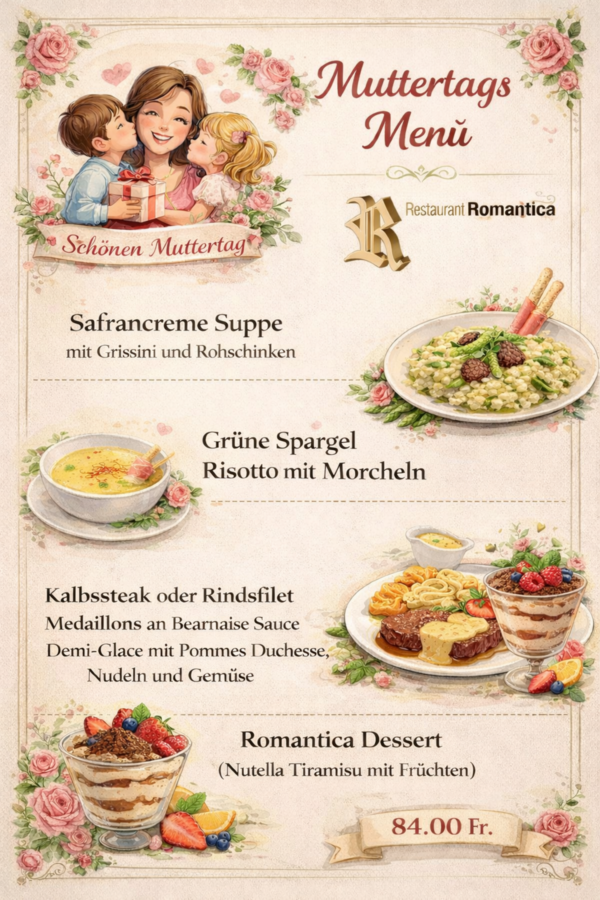 Seit dem 2. Juli 2005 wird das Restaurant Romantica in Brig-Glis mit viel Engagement und Herzblut von der vierkopfigen Gastgeberfamilie Fercher geführt. Das Geschwister-Paar Margot und Erich werden von Ihren Eltern Rita und Hans-Ruedi kraftvoll unterstützt. Der Speisesaal lädt zum Festschmaus ein und ist bestens geeignet für Firmen-, Vereins- und Familienanlässe. Eine persönliche Beratung bei der Reservation ist eine Selbstverständlichkeit. Die Überdachte, angenehme Gartenterrasse und die 14 eigenen Parkplätze vor und hinter dem Restaurant, vervollstandigen das Romantica-Angebot. Erich und sein Team in der Küche sind stets bemüht den Gästen abwechslungsreiche und frische Gerichte zuzubereiten, welche von Margot und ihrem Service-Team mit viel Elan, Freundlichkeit und Aufmerksamkeit serviert werden. Gemütlichkeit und Geselligkeit rund ums gute Essen und Trinken.